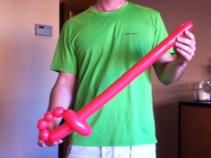 La espada hecha con un globo no puede faltar en ningún cumpleaños o reunión familiar. Este inofensivo instrumento puede resultar muy entretenido para distraer a los niños y además también una excusa para que jueguen entre ellos, eso sí, siempre habrá que controlar a aquellos que se lo tomen más en serio.