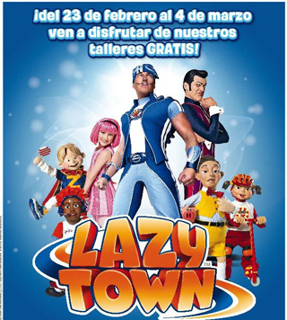 Entre los días 23 de febrero y 4 de marzo de 2012, en el Centro Comercial de La Vaguada acudirán los personajes de Lazy Town, así se podrá participar en los talleres para niños que van a crear. Destinado principalmente para niños de 4 y 10 años.