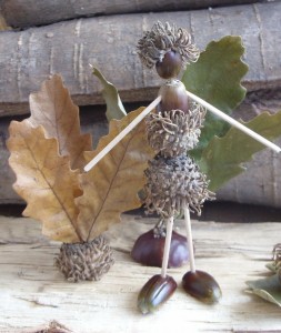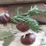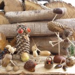 En su correo electrónico nos indicaba que cuando estaba en la escuela, hacían excursiones con los compañeros a la montaña, parques y jardines, durante la época de otoño, y recogían todo tipo de hojas, bellotas, castañas, piñas y todo tipo de frutos secos, para despúes eleborar una serie de figuras muy interesantes. Solamente es necesario junto con las hojas y los frutos recogidos, unos palillos, pegamento y plastilina, además de paciencia, para poder hacer este tipo de figuras. Es muy recomendable la presencia de los padres o profesores para esta actividad, pues también será necesario un punzón para hacer los taladros en las piñas.