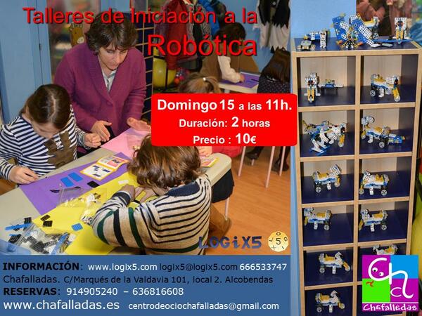 Chafalladas, el centro de ocio infantil situado en Alcobendas nos presenta un taller de iniciación a la robótica para niños. Se celebrará el próximo domingo 15 de diciembre de 2013, desde las 11:00 horas hasta las 13:00 horas. Destinado para niños a partir de 7 años.